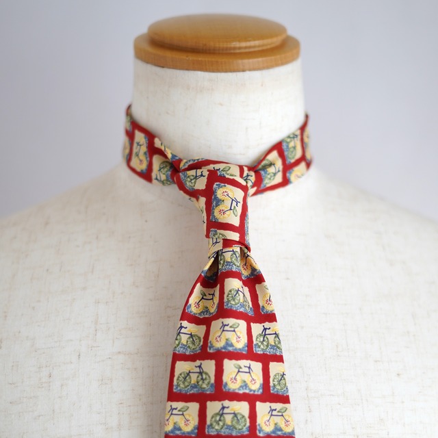自転車という意外性のあるモチーフを大胆に散りばめた、バナナ・リパブリックのユーモラスなネクタイ。 一見ポップで軽快ながら、ブランドらしい洗練された配色と上質な素材感により、大人の余裕を感じさせる一本に仕上がっています。 スーツスタイルの“外し”としてはもちろん、ジャケットスタイルに合わせれば会話のきっかけにも。 真面目になりすぎない、でも子どもっぽくならない――そんな絶妙なバランスを楽しめる、遊び心たっぷりのネクタイです。 【ブランド紹介】 1978年、カリフォルニア州サンフランシスコで誕生したBanana Republicは、当初「探検家スタイル」のサファリウェアを中心に展開していたブランドです。1983年にGAP社の傘下に入り、そこから上質で洗練された大人のカジュアルブランドへと進化。世界中から厳選した素材を使用し、クラシックと現代的センスを融合させたコレクションは、幅広い年代の支持を集めています。ビジネスにも日常にもフィットする、モダンなライフスタイルブランドです。 素材 : シルク100% カラー : レッド系 サイズ : 剣先幅 10.2cm / 全長 147.5cm 生地、芯地の厚み:やや薄め 状態 : A(コンディション良好) 生産国 : イタリア ※着画用トルソーのサイズ メンズM (肩幅44cm 胸囲94cm ウエスト79cm) 日本人男性の平均的な体格