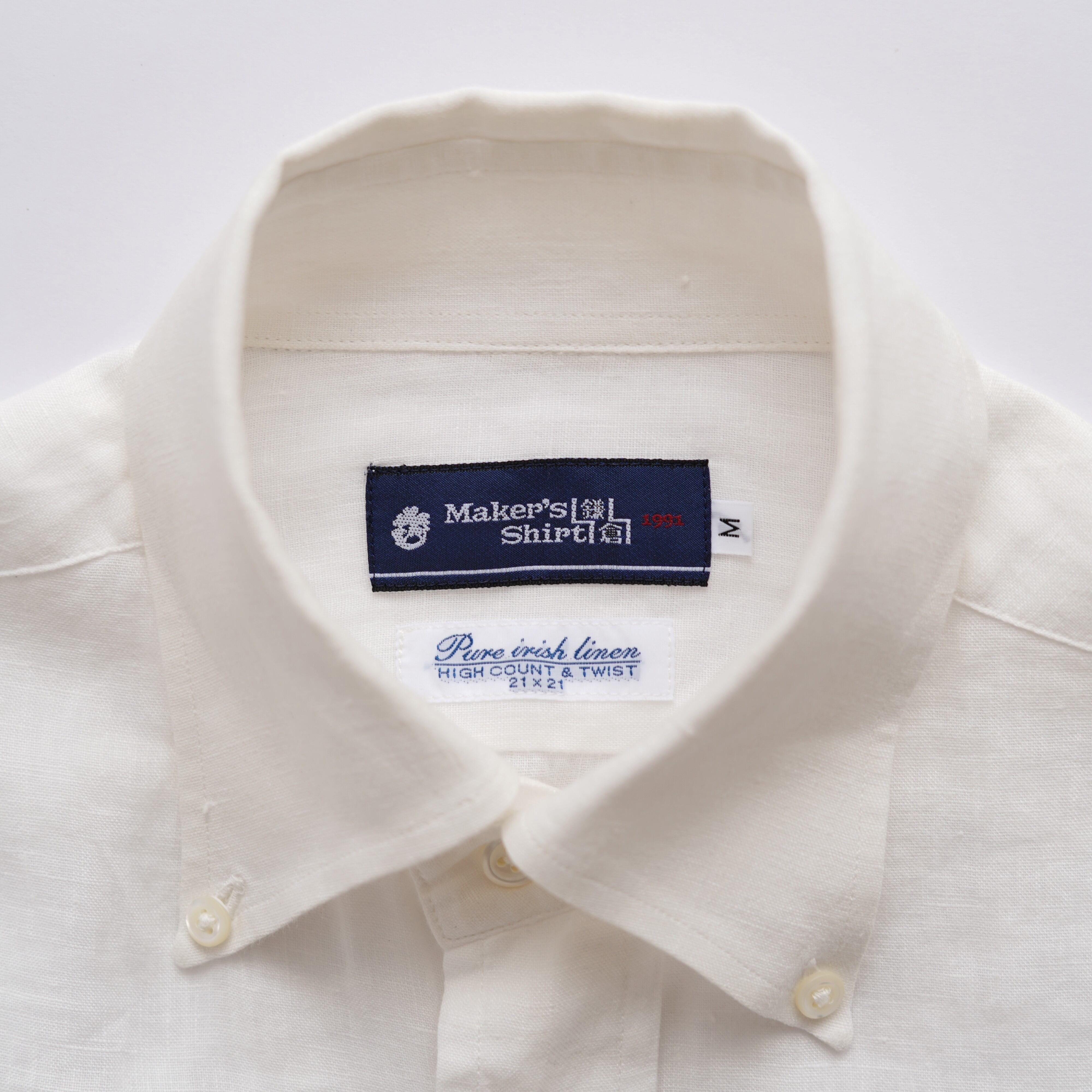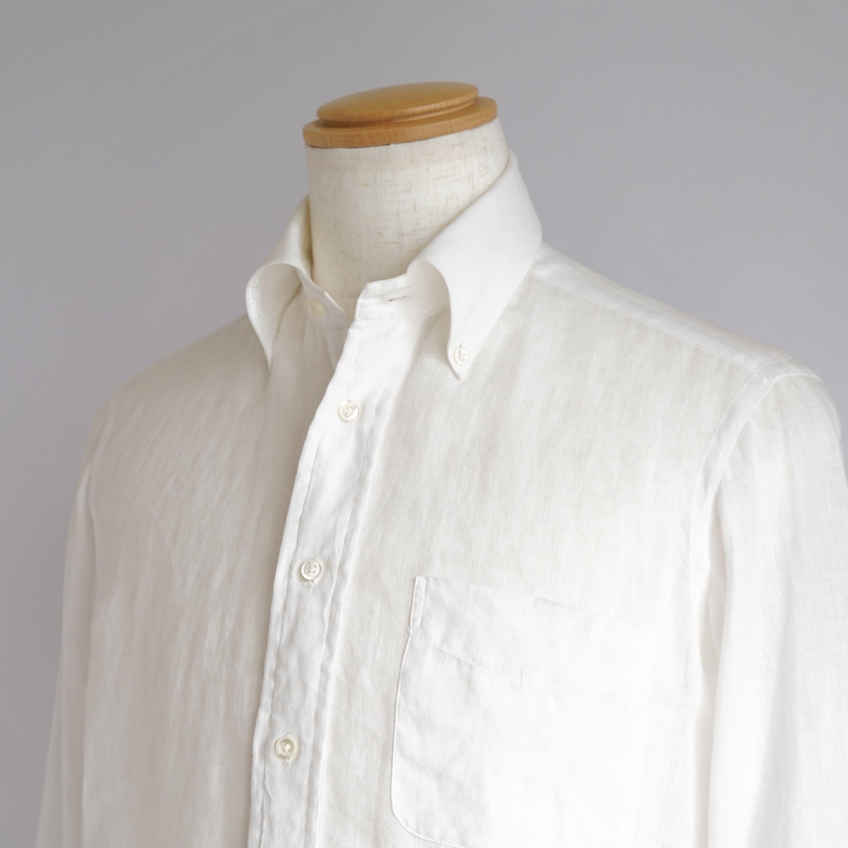 清涼感あふれるホワイトのリネンボタンダウンシャツは、シンプルでありながら確かな存在感を放つ一枚。