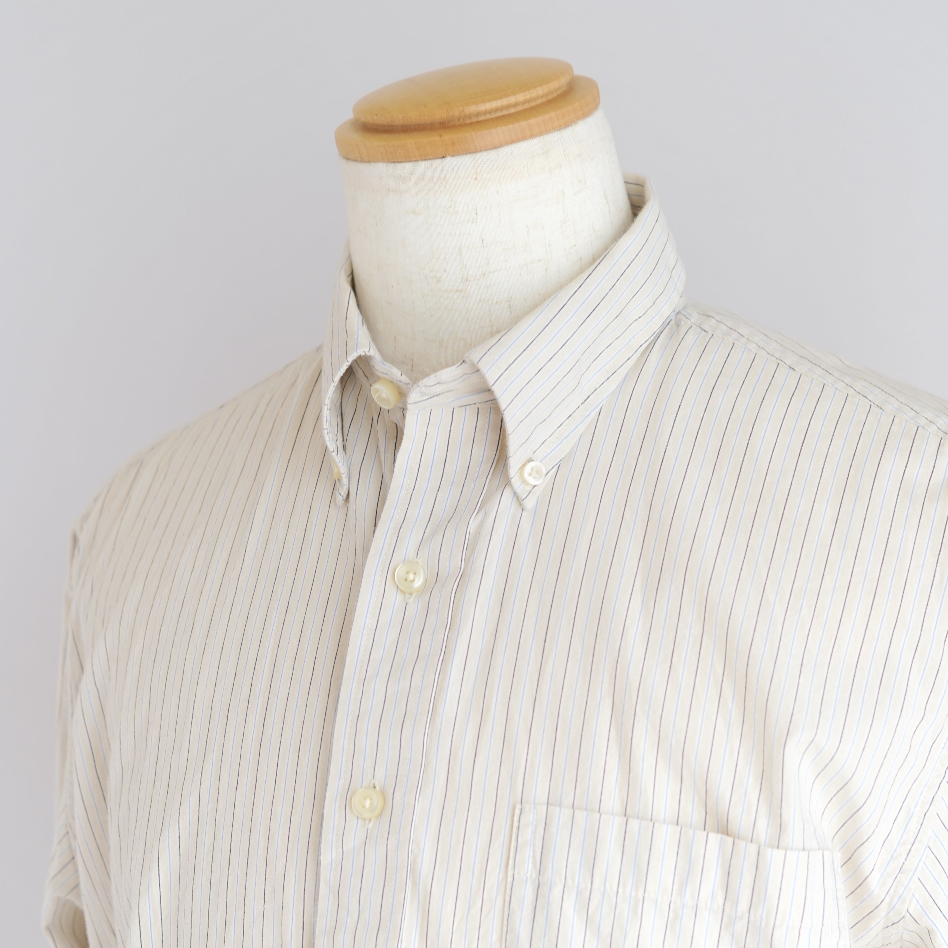 細めのストライプ柄とボタンダウン襟が、清潔感とほどよい上品さを演出してくれます。