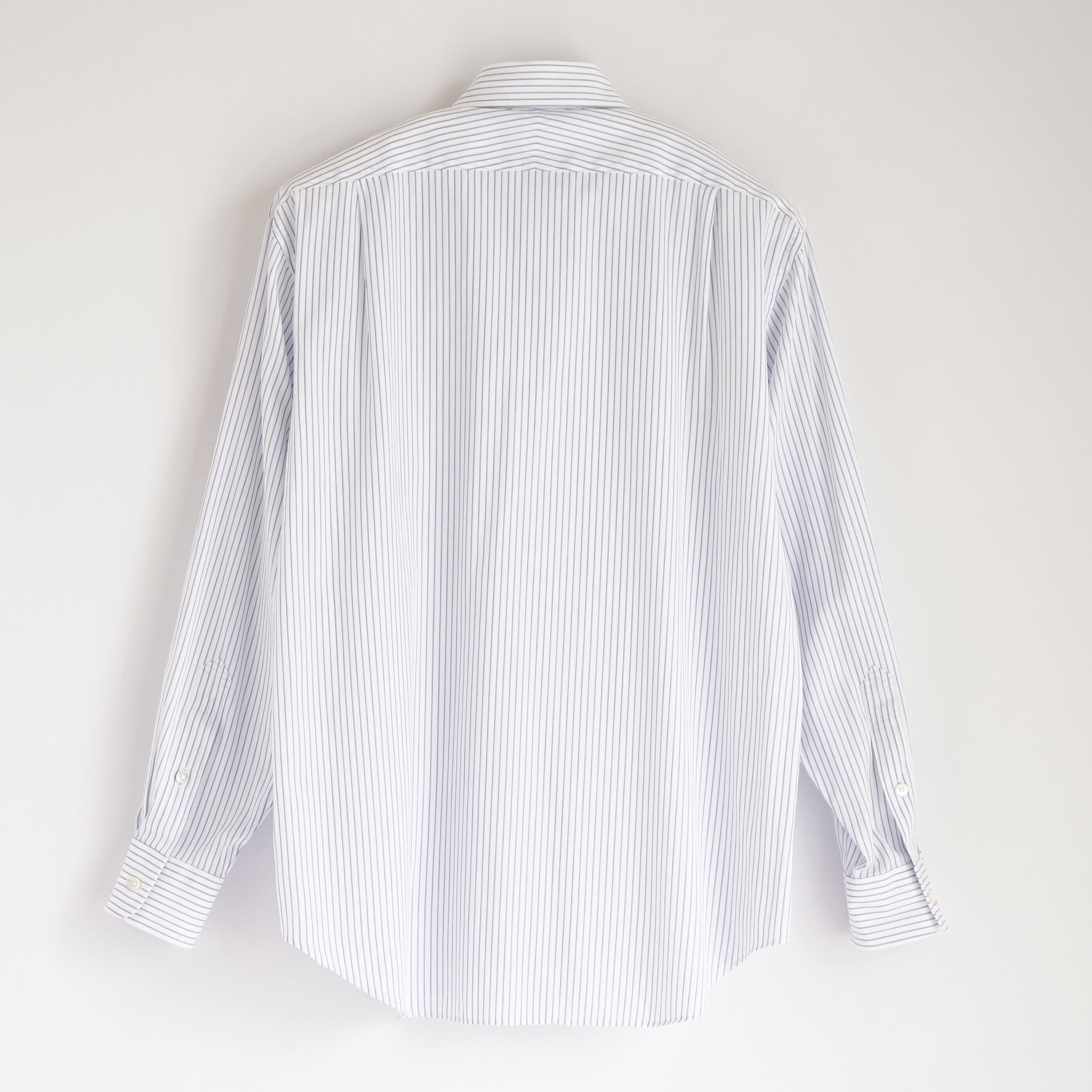爽やかなストライプ柄は、ビジネスシーンはもちろん、ジャケットを羽織ればオフの日のお出かけにも◎。シルエットはスッキリとしたスマートフィットで、着心地も抜群です。