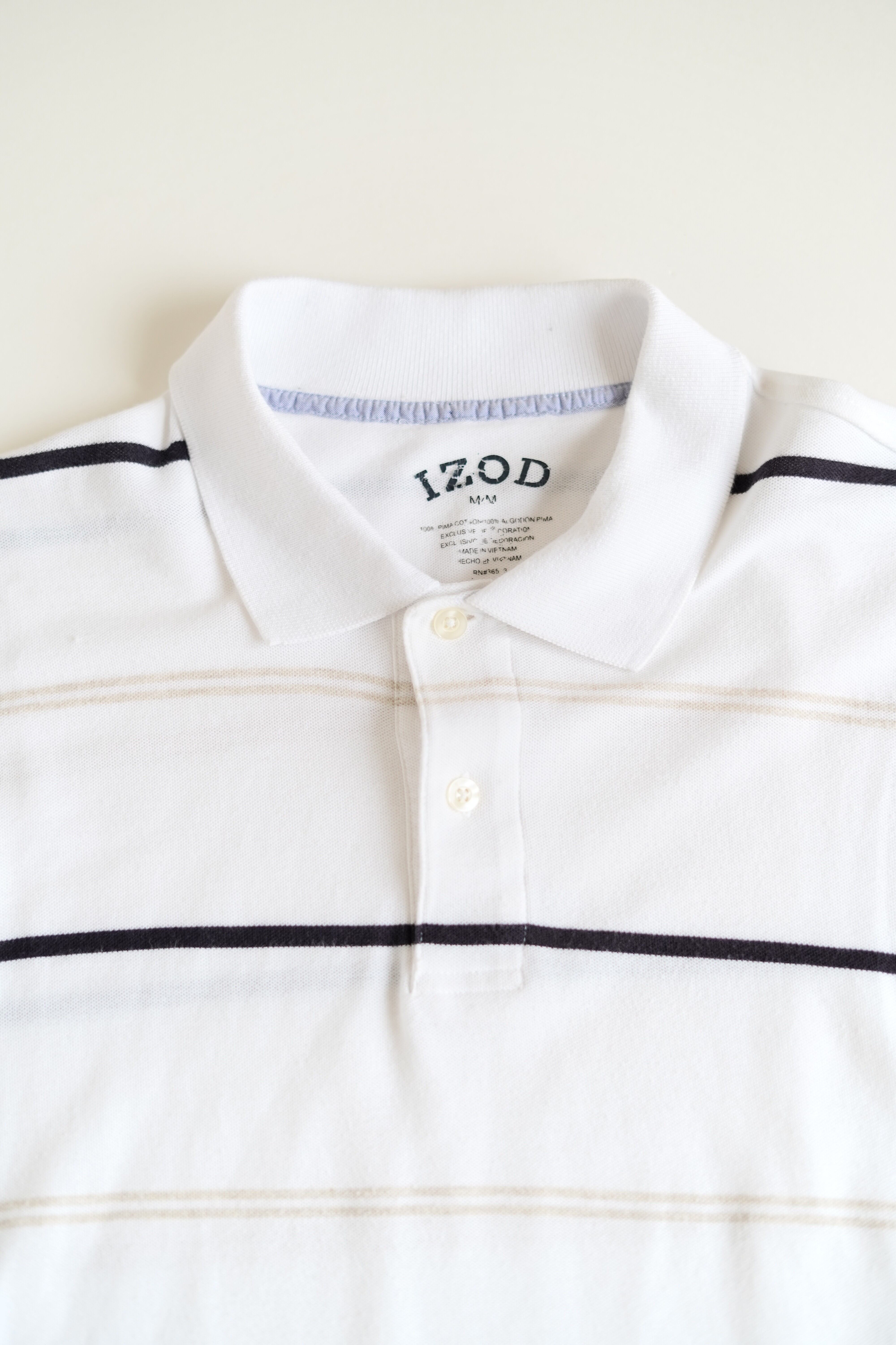 クラシックなアメリカンカジュアルを代表するブランド「IZOD」のボーダーポロシャツです。やや薄手のさらっとした生地は通気性がよく、暑い日でも快適な着心地をキープ。涼しげな配色のボーダーデザインが、シンプルながらもコーディネートに程よいアクセントを加えます。