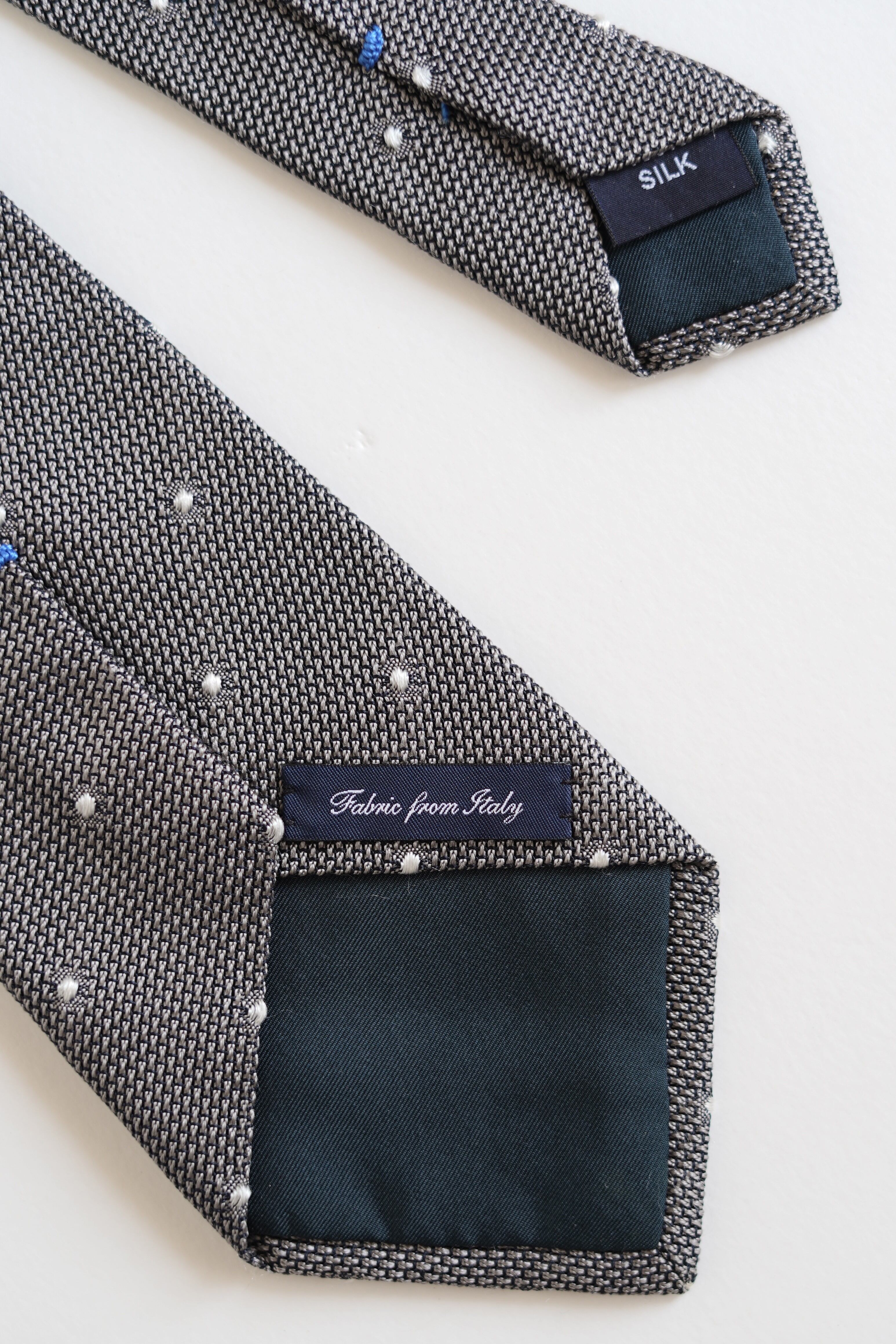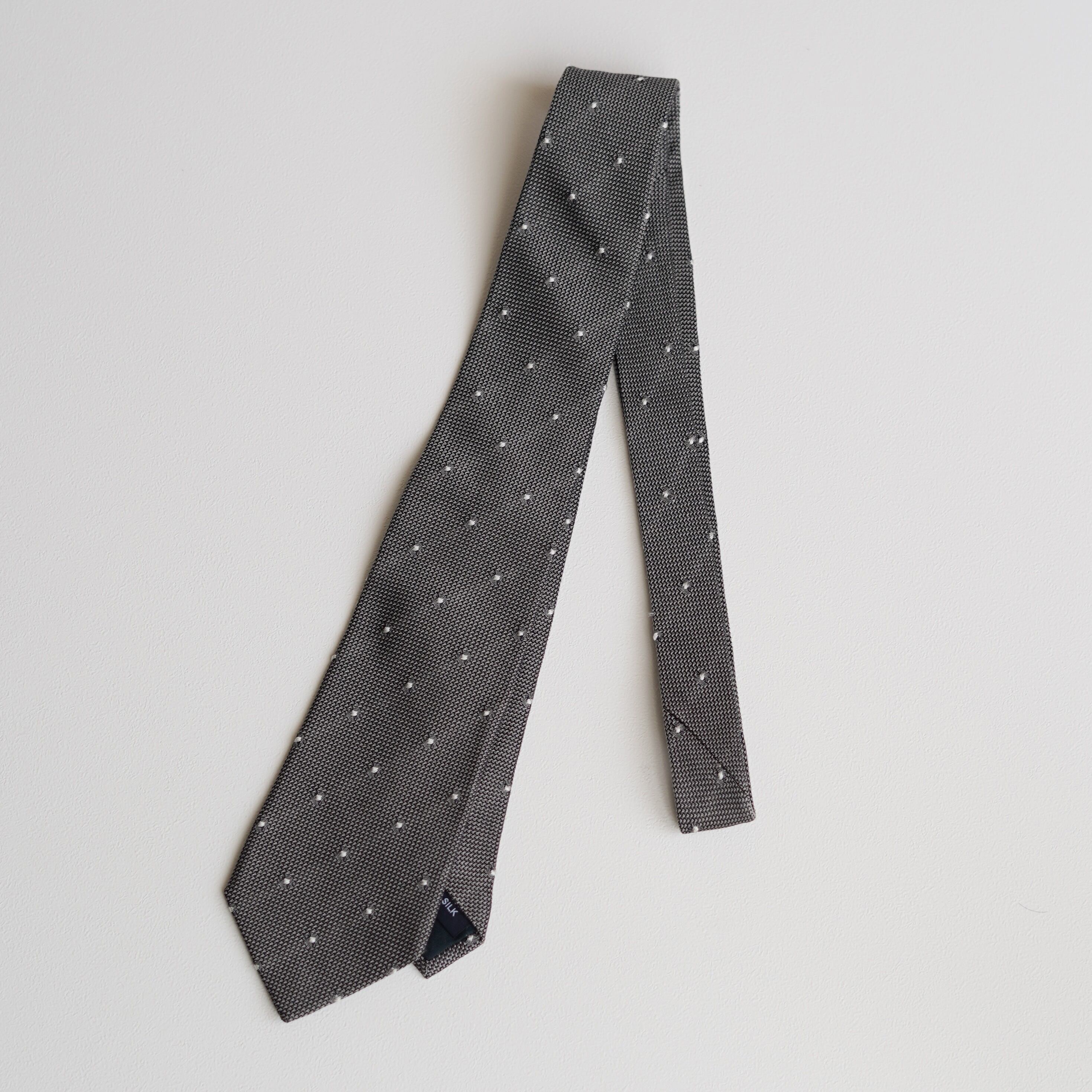 シンプルだけどさりげなくオシャレなMaker's shirts 鎌倉のネクタイ。ピンドット柄がちょっとしたアクセントになっていて、ビジネスはもちろん普段のスーツスタイルにもぴったり。