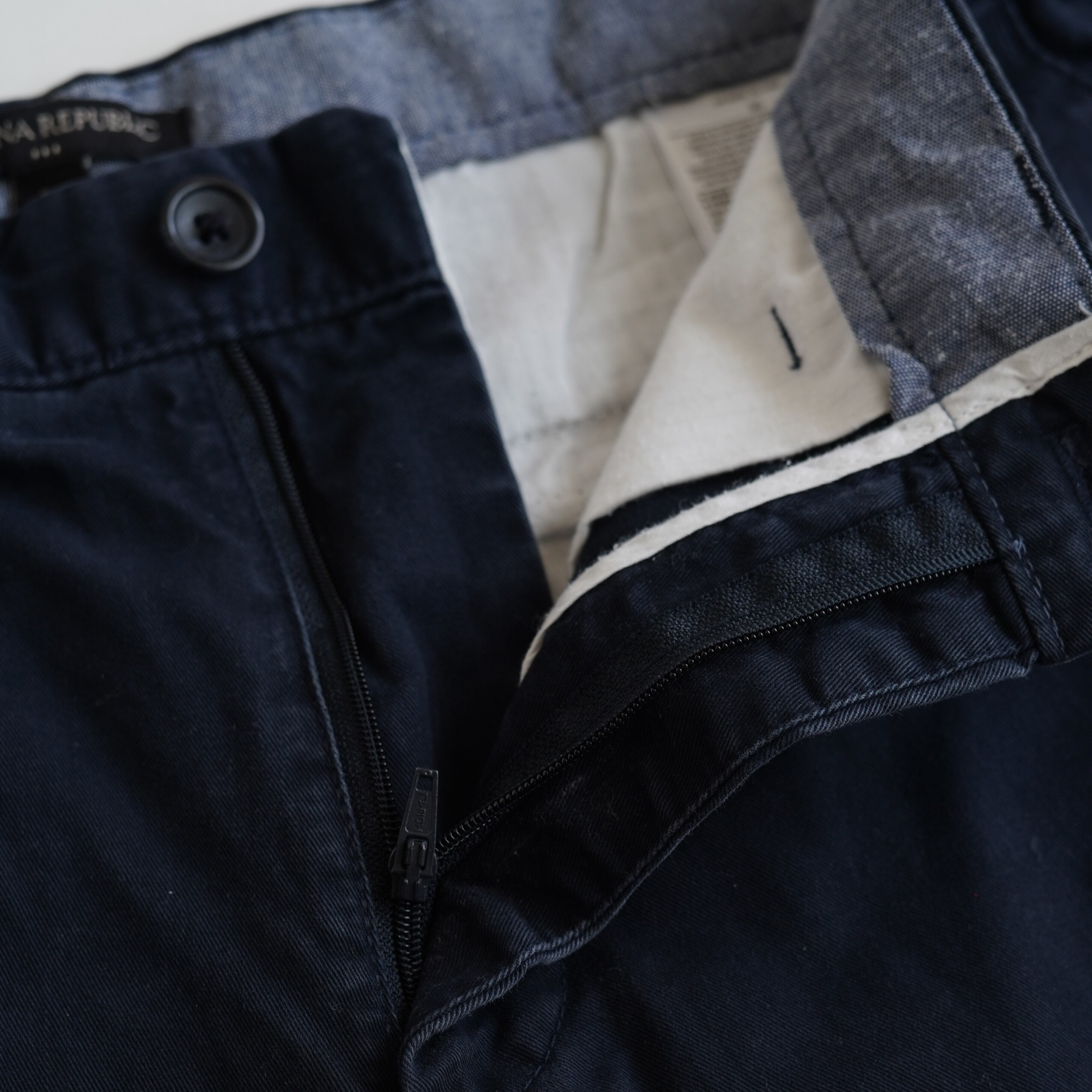 定番のネイビーで合わせやすい、バナナリパブリックのチノショーツ。ほどよいスリムシルエットで、カジュアルながらもきちんと感をキープ。軽やかなチノ素材は通気性がよく、春夏のデイリースタイルやリゾートシーンに最適です。シンプルなデザインなので、ポロシャツやTシャツなど幅広いコーディネートに対応できます。大人のカジュアルスタイルを格上げする一本です。