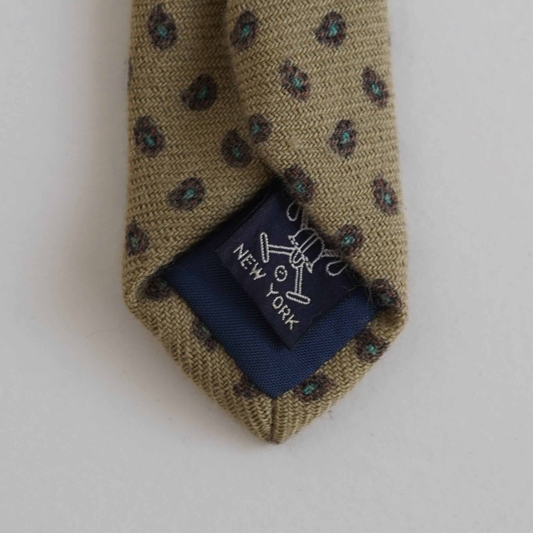 Ralph Laurenのウールネクタイは、アースカラーを基調とした落ち着いたトーンで、クラシックなアメリカントラッドスタイルにぴったり。柔らかなウール素材が秋冬の装いに暖かみを添え、上質で落ち着いた印象を演出します。