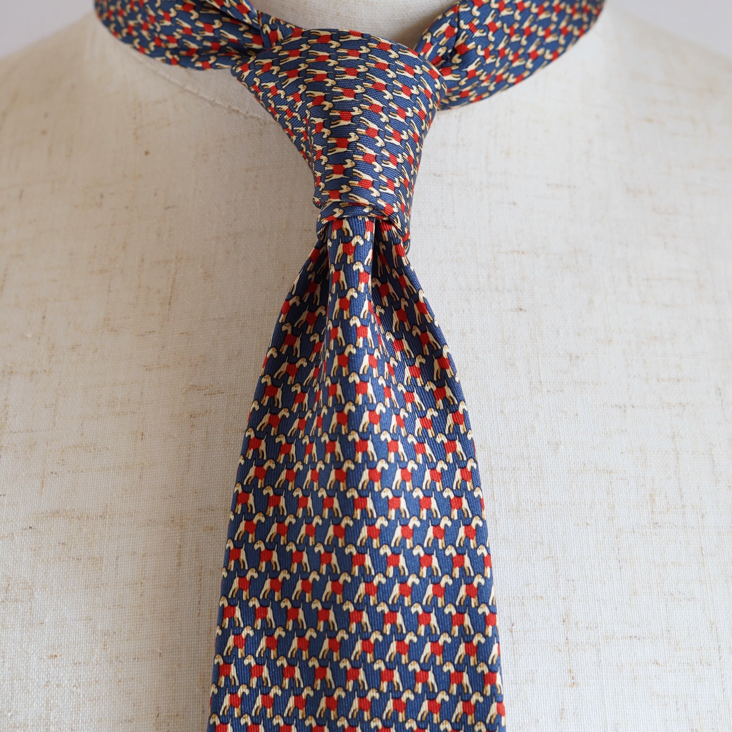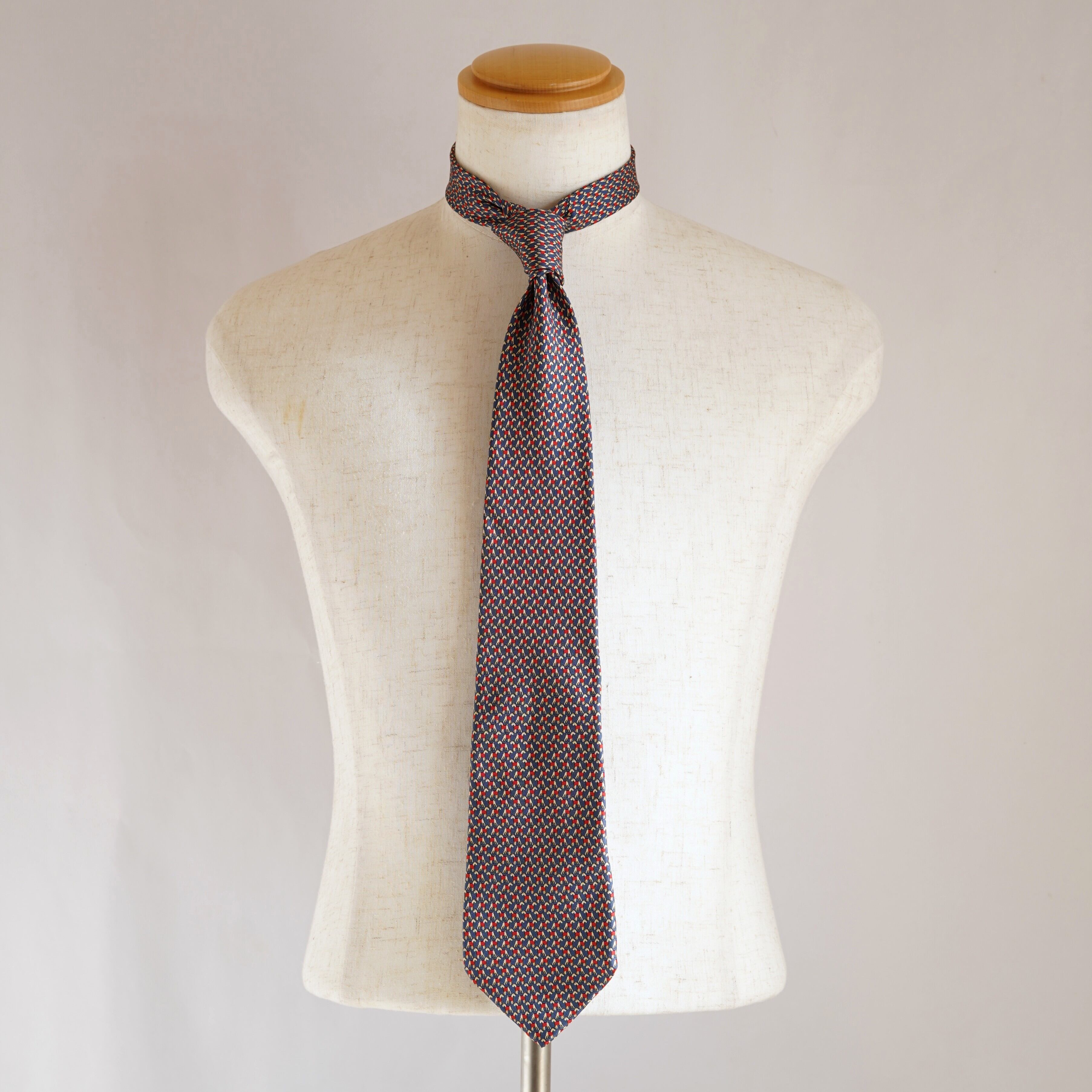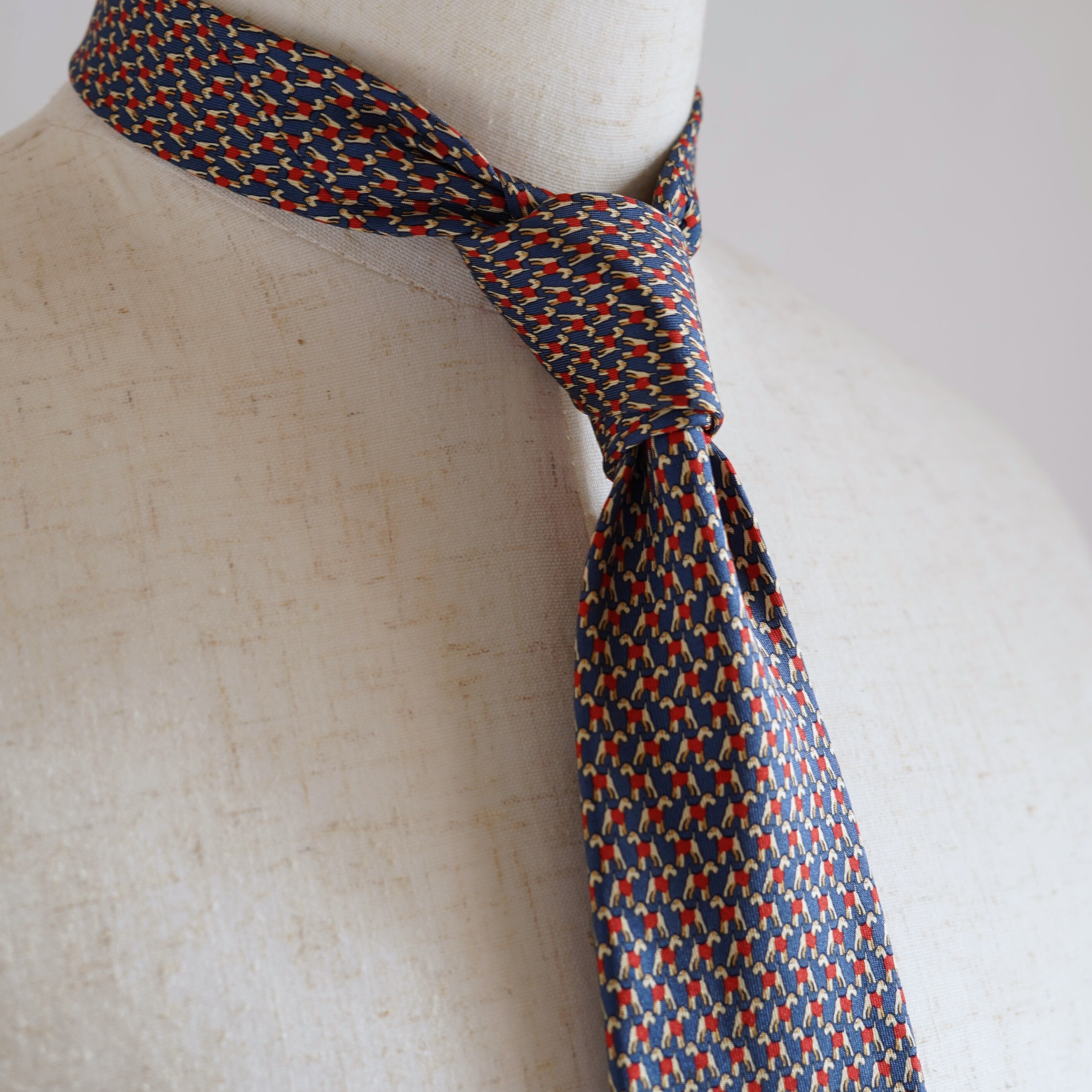 フェラガモの遊び心と上質さが調和した、シルクネクタイのご紹介です。