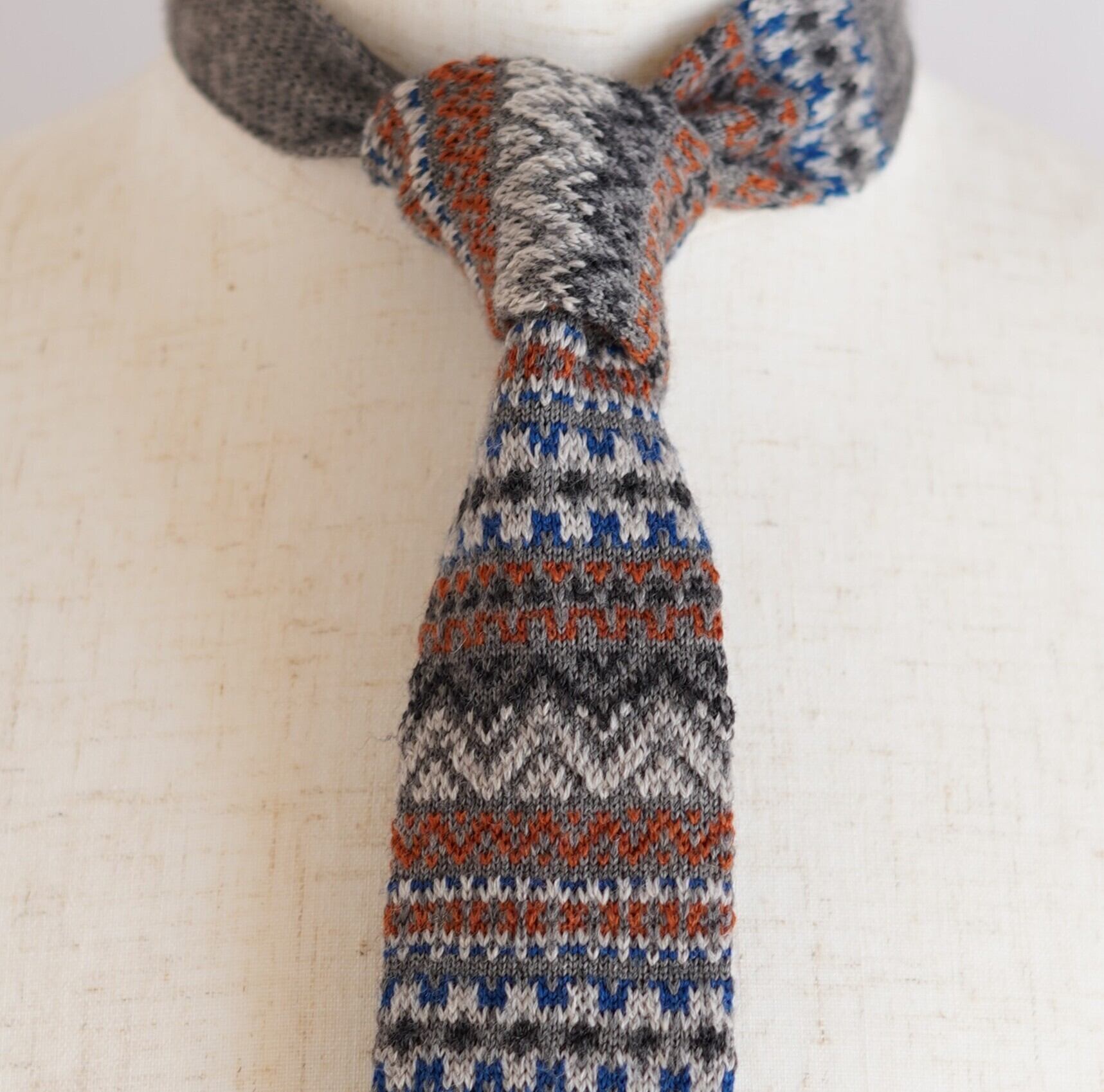 伝統的なフェアアイル柄を取り入れた、あたたかみのある表情が魅力のフィオリオ ウールニットタイ。