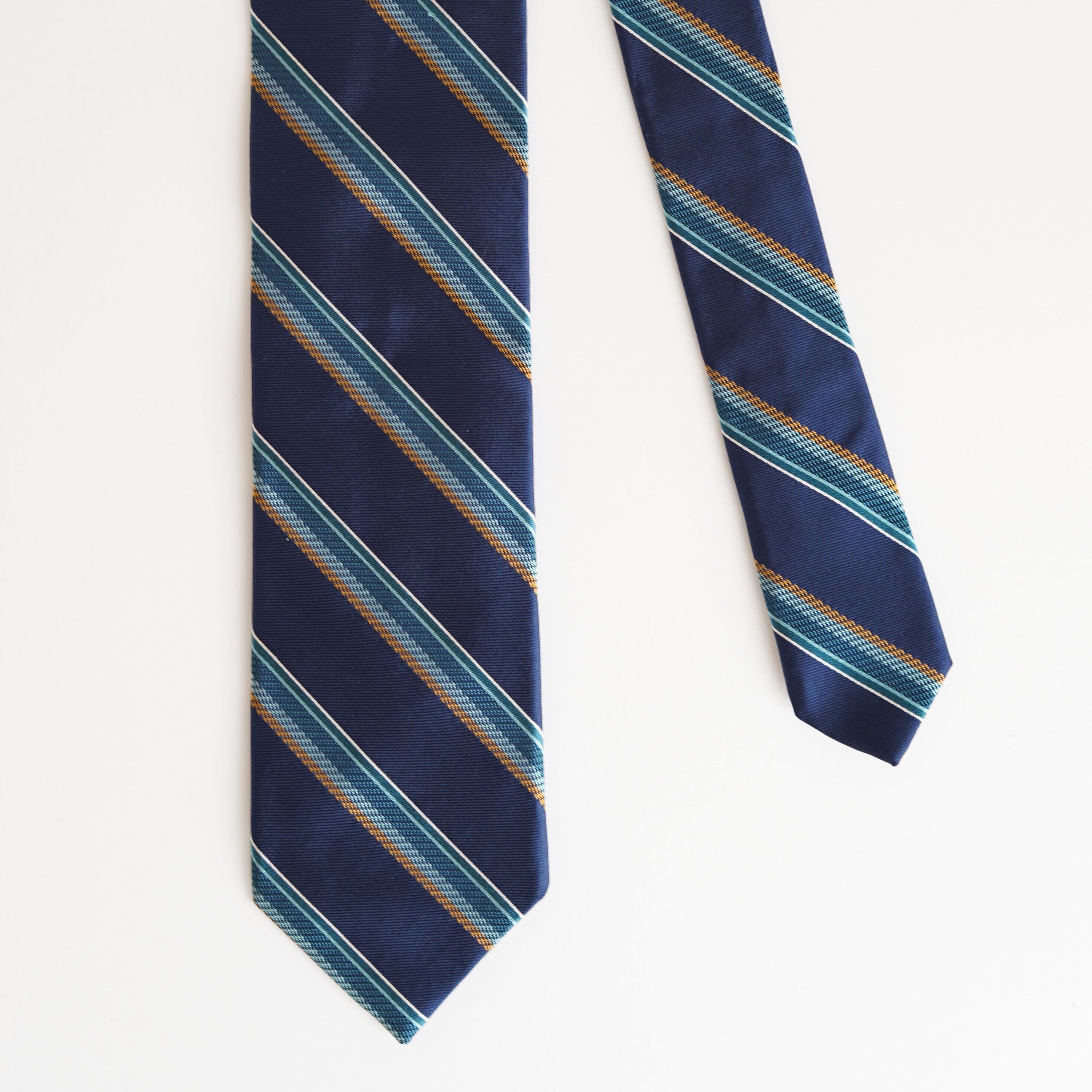 ボールスチュワートのレップタイは、ネイビーベースの落ち着いた色調が印象的な一本です。