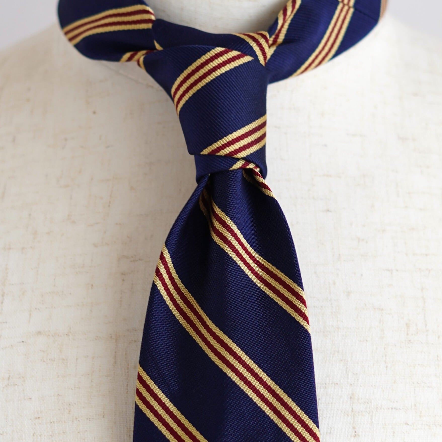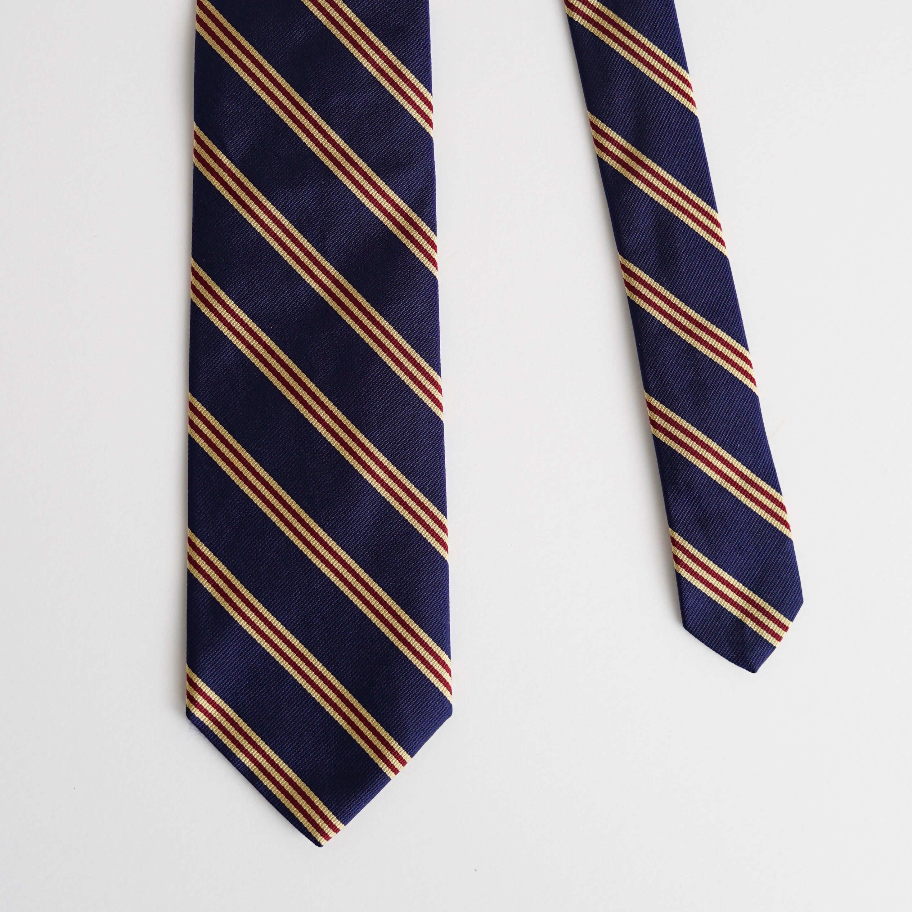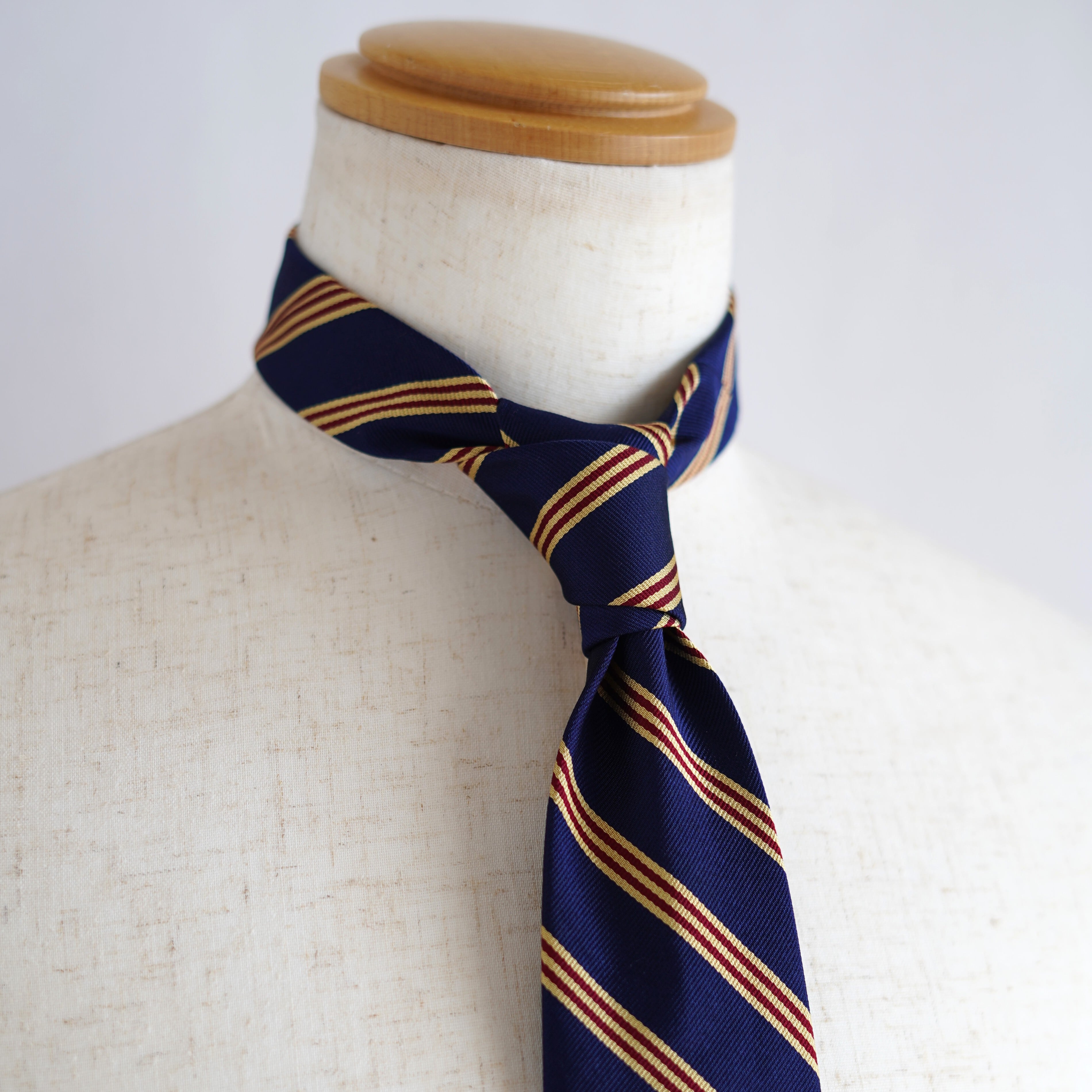 左上がりの端正なストライプが、アイビーリーグに代表される伝統的なスタイルを想起させ、落ち着きのある佇まいの中に確かな品格を宿します。