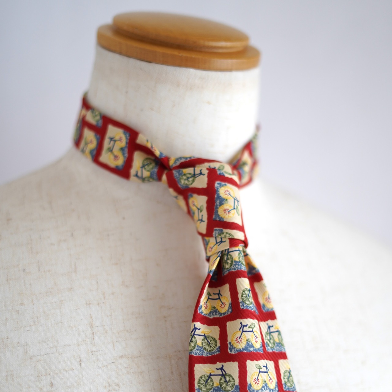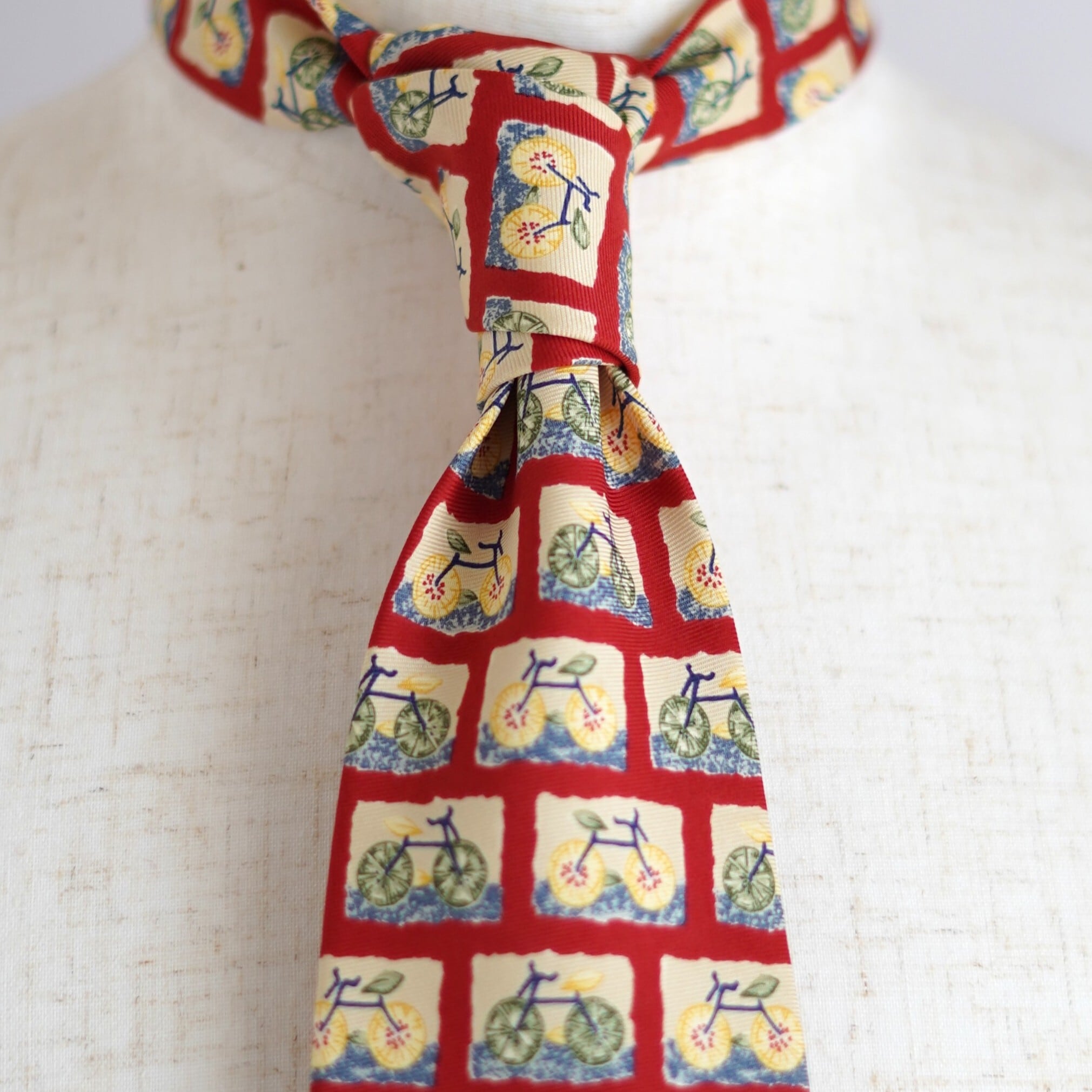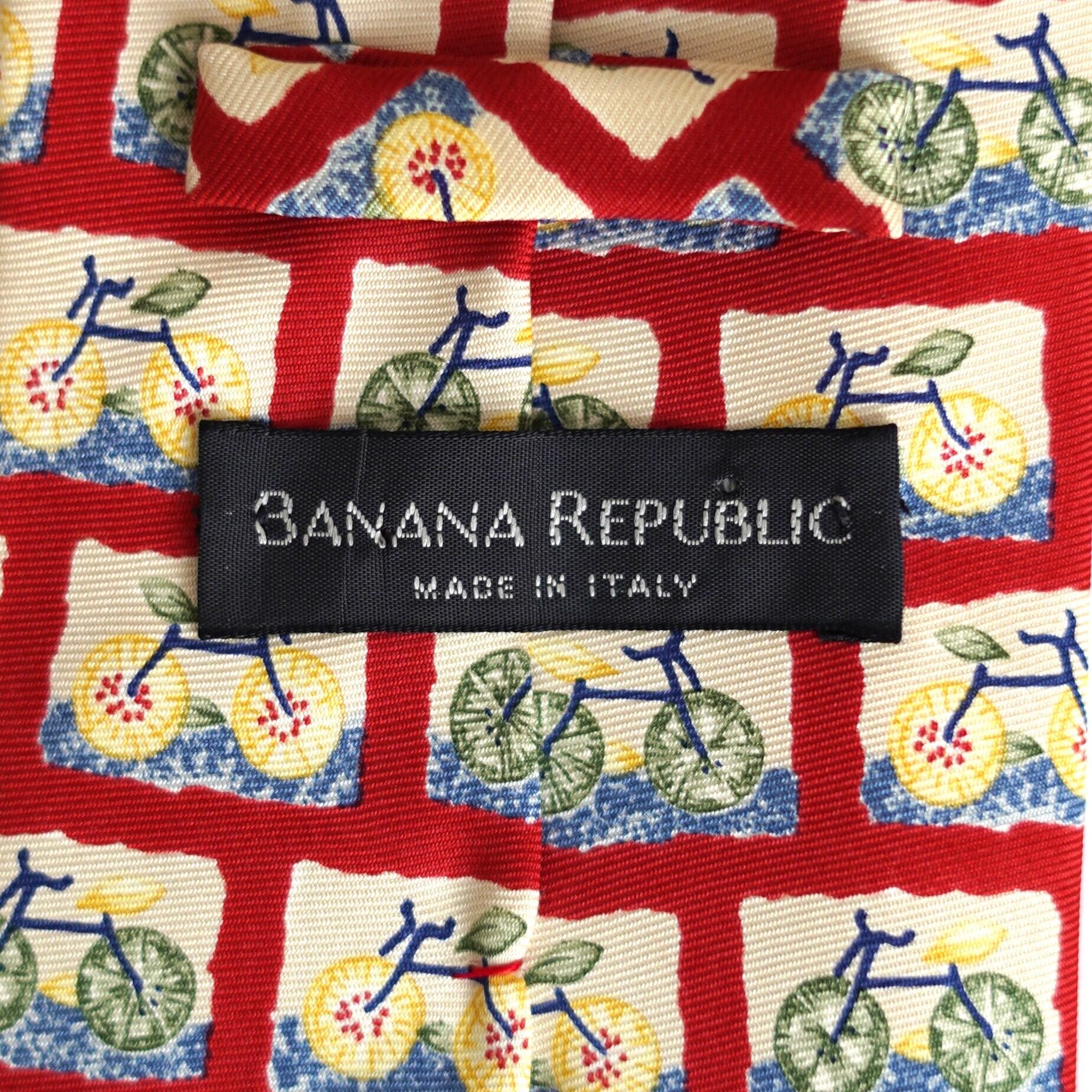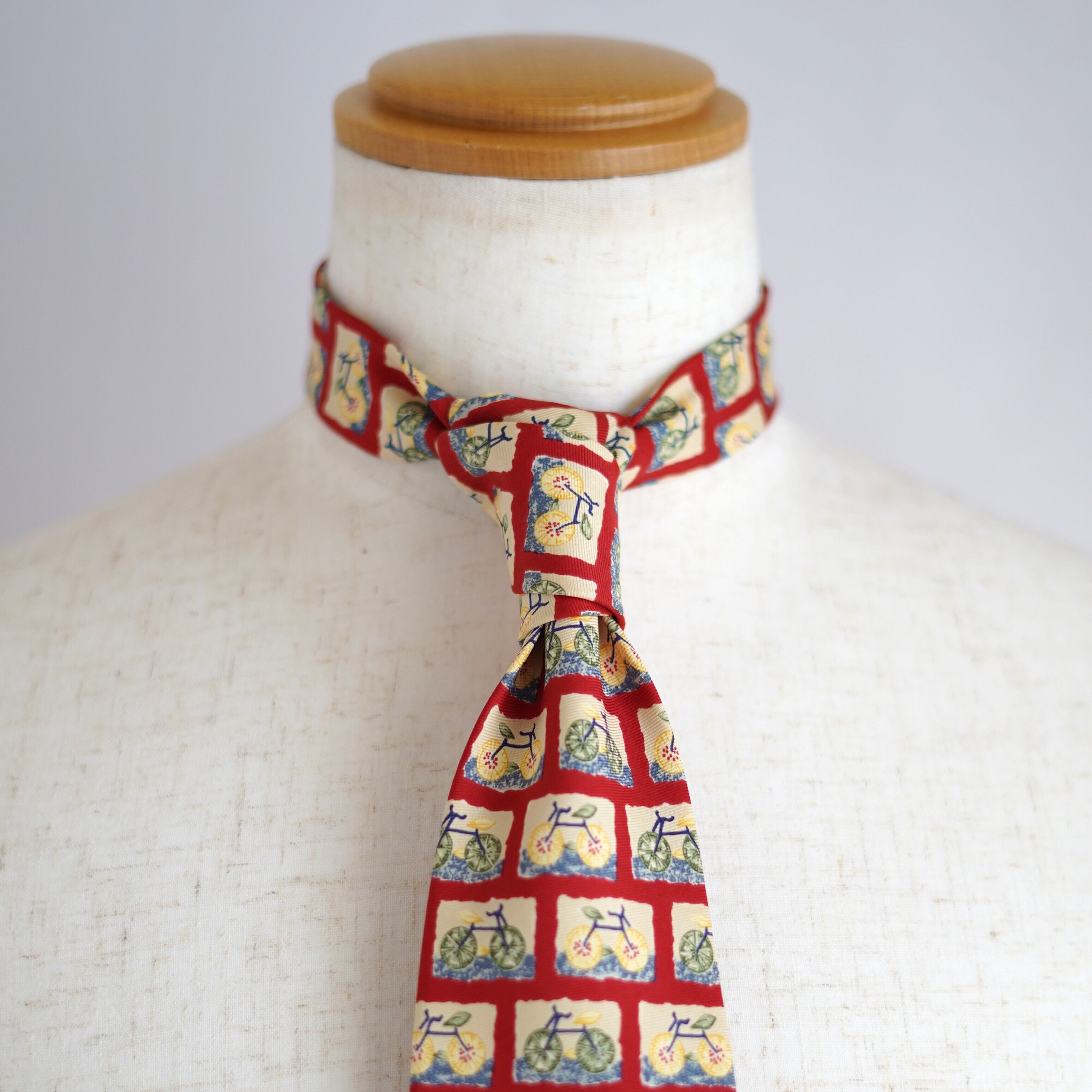 自転車という意外性のあるモチーフを大胆に散りばめた、バナナ・リパブリックのユーモラスなネクタイ。