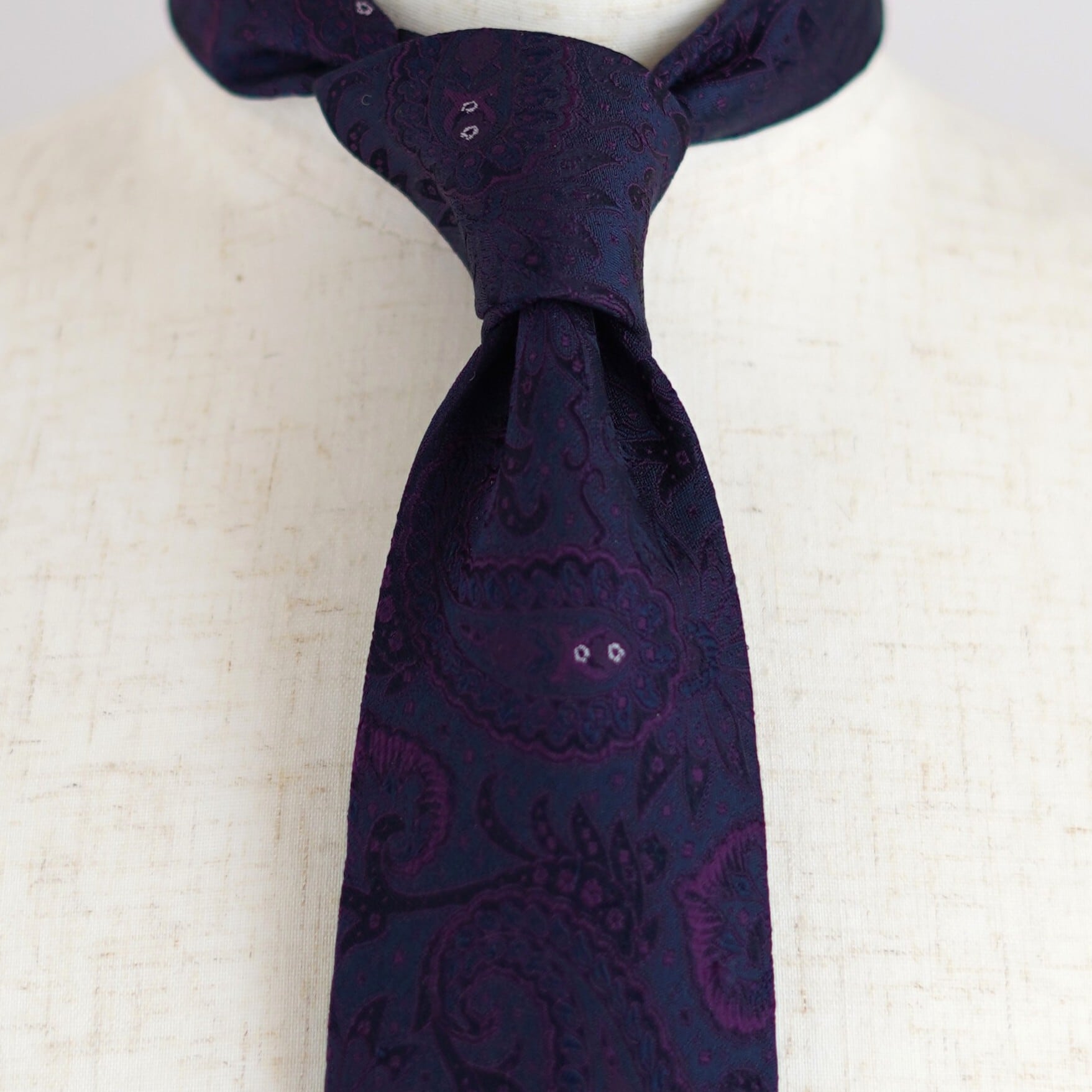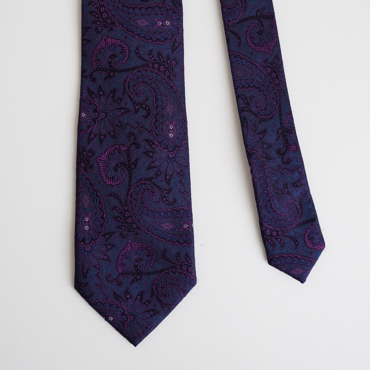 こちらのポール・スチュワートのネクタイは、端正な佇まいの中に上質な遊び心を忍ばせた一本。
