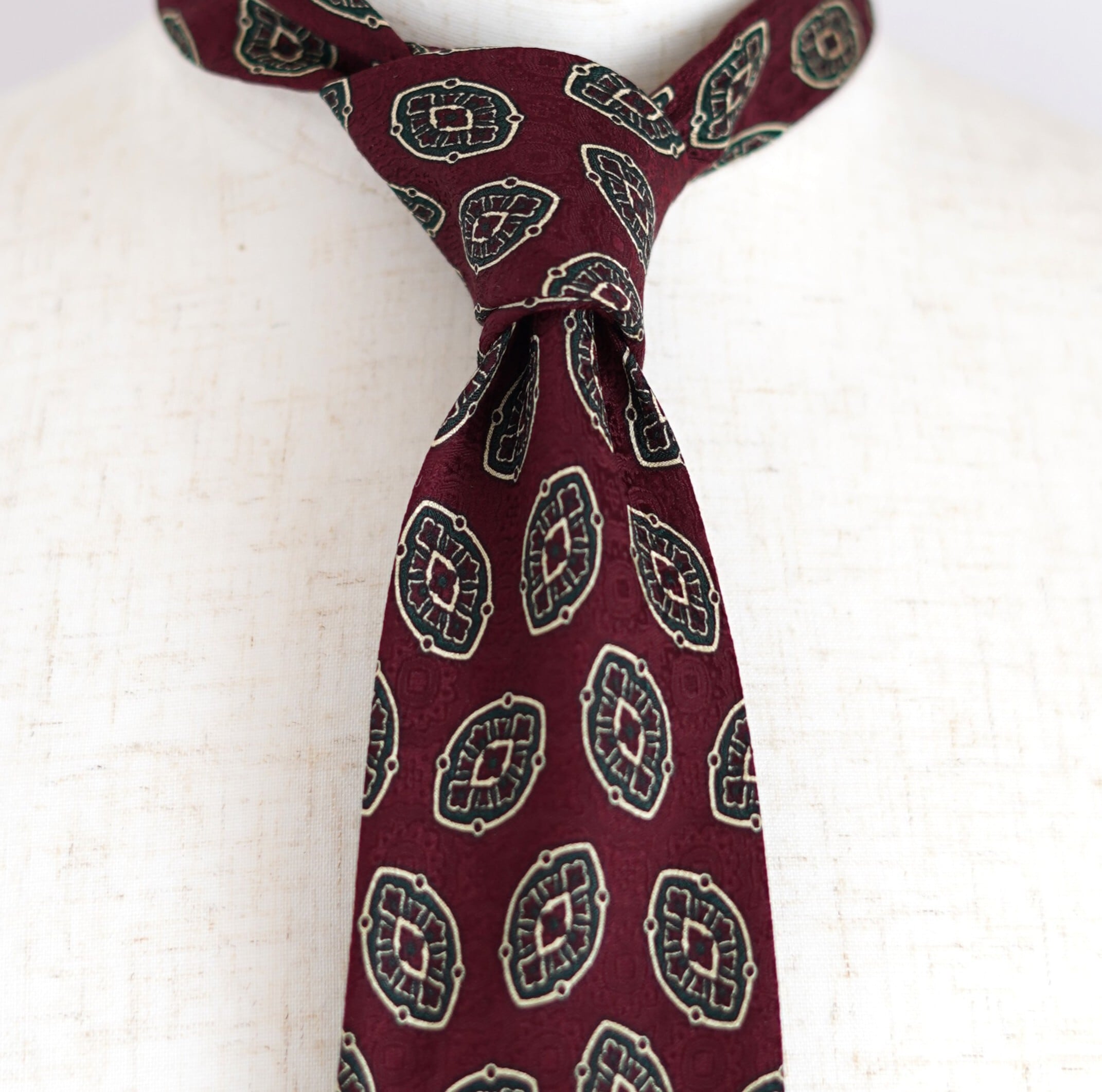 深みのあるボルドーを基調とした、ランバンのエレガントなネクタイ。